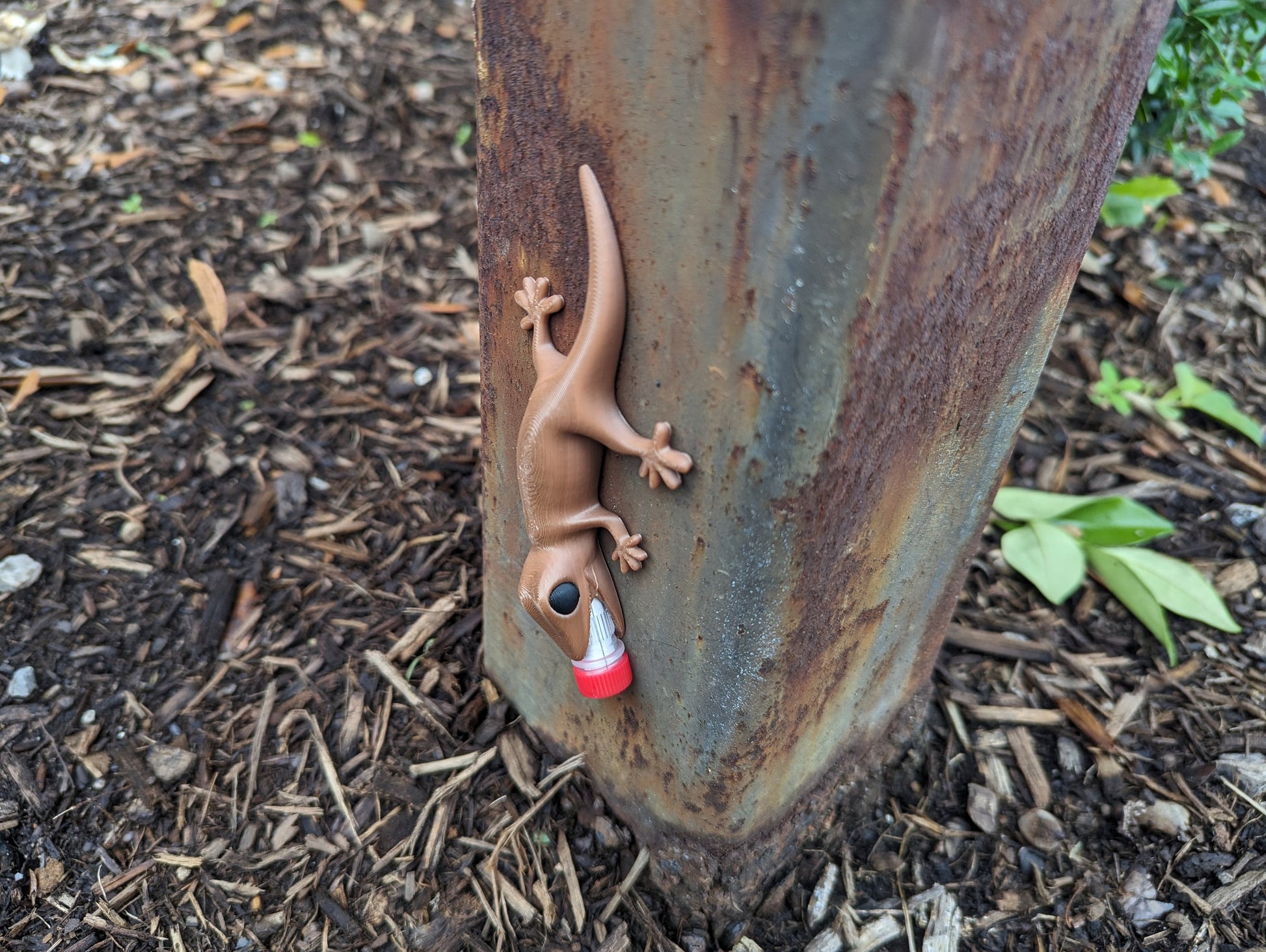 Imagine a delightful surprise during your geocaching adventure – a whimsical 3D printed container that looks like a cheerful gecko! This lively little gecko is bound to bring a smile to your face with its vibrant colors and friendly demeanor.